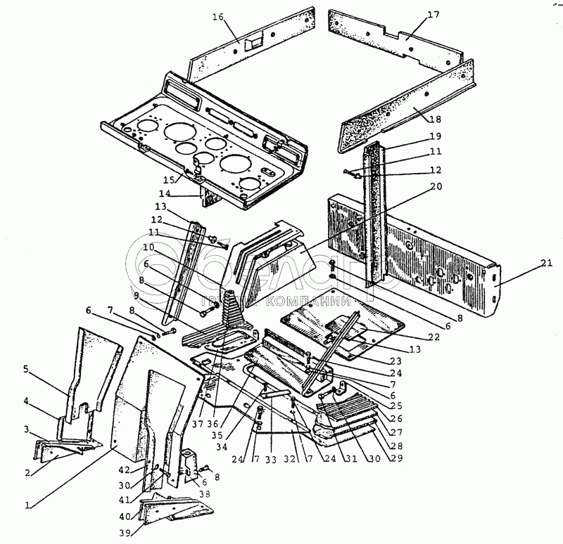 Каталог запасных частей к технике: МТЗ-80 (2002). 6702, 6706 Кабина трактора. Пол кабины