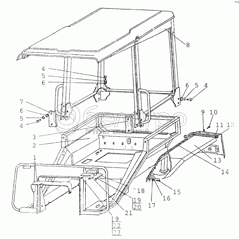 Каталог запасных частей к технике: МТЗ-80 (2002). 6702, 8404 Тент каркас. Основание