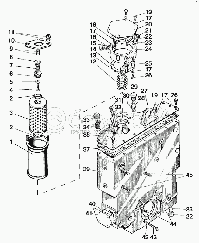Каталог запасных частей к технике: МТЗ-80 (2009). Корпус гидроагрегатов и фильтр. Вариант