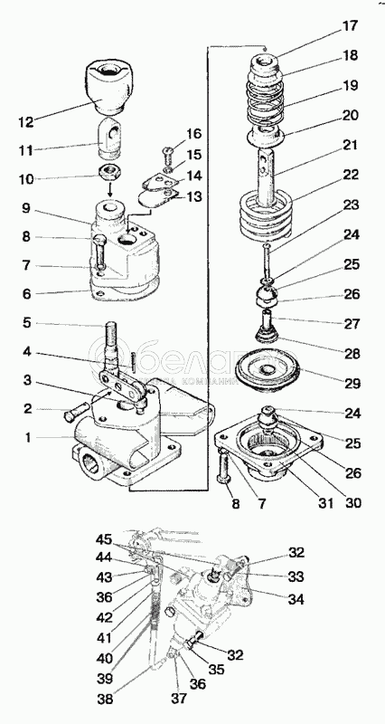 Каталог запасных частей к технике: МТЗ-80 (2009). Кран тормозной (для однопроводного пневмопривода)