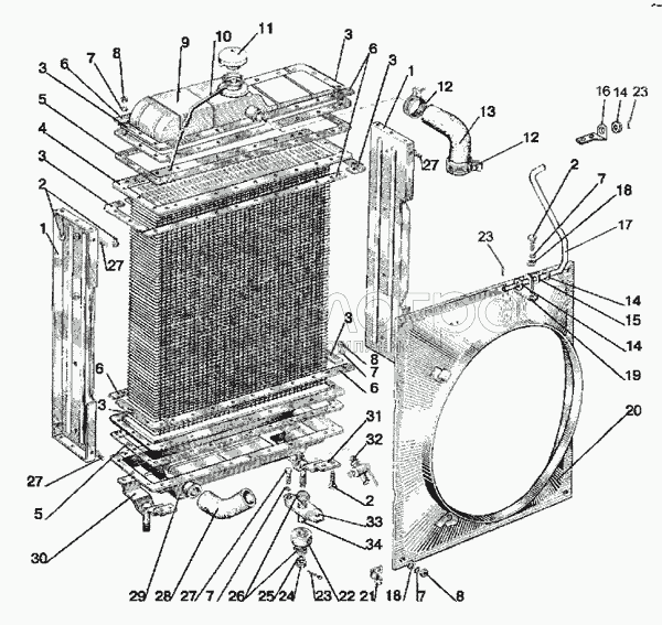 Каталог запасных частей к технике: МТЗ-80 (2009). Радиатор водяной. Подвеска радиатора водяного