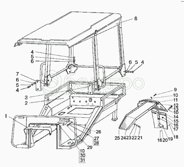Каталог запасных частей к технике: МТЗ-80 (2009). Тент-каркас. Основание