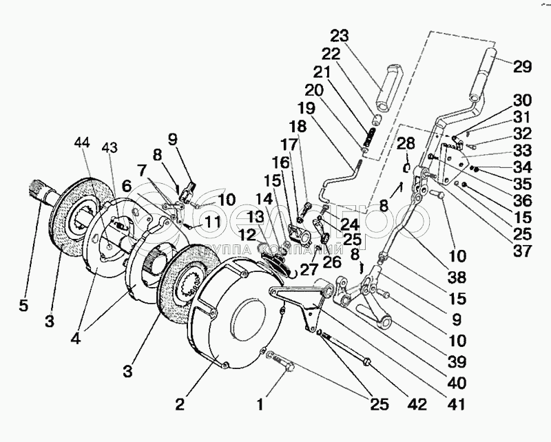 Каталог запасных частей к технике: МТЗ-80 (2009). Тормоз стояночный. Управление стояночным тормозом