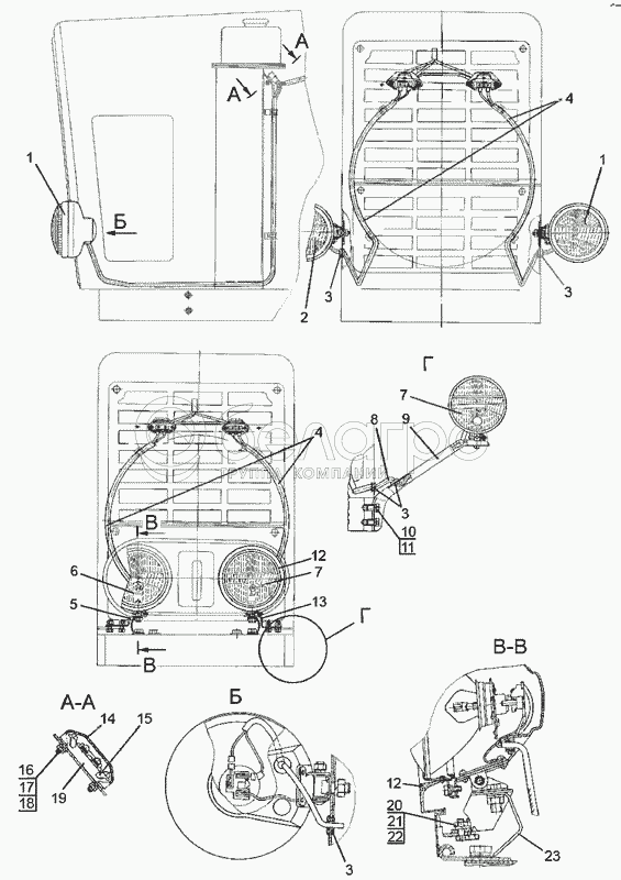 Каталог запасных частей к технике: МТЗ-80 (2009). Установка фар дорожных