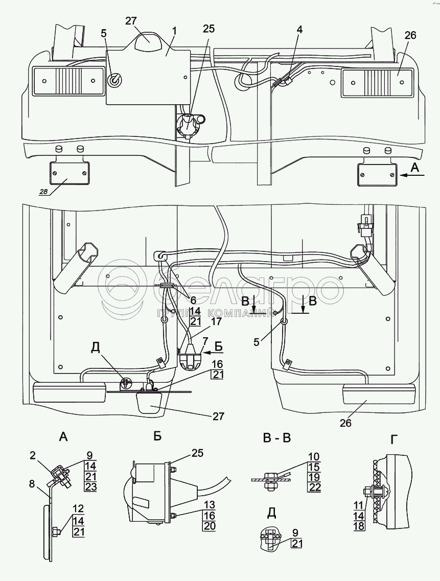 Каталог запасных частей к технике: МТЗ-821/921. Фонари задние, розетка, фонарь освещения номерного знака