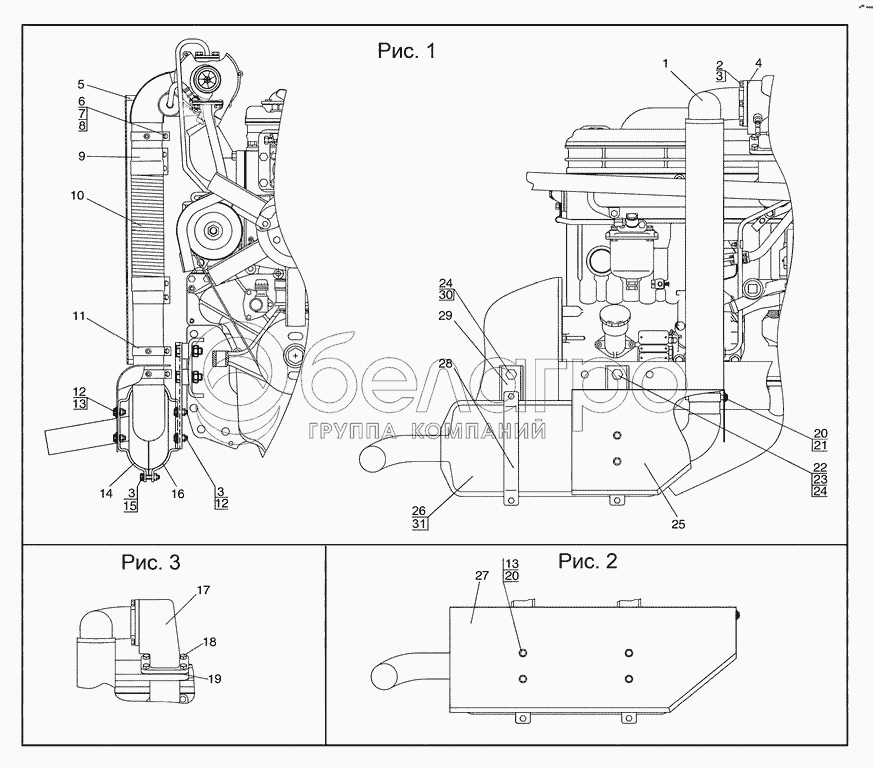 Каталог запасных частей к технике: МТЗ-821/921. Глушитель, установка глушителя