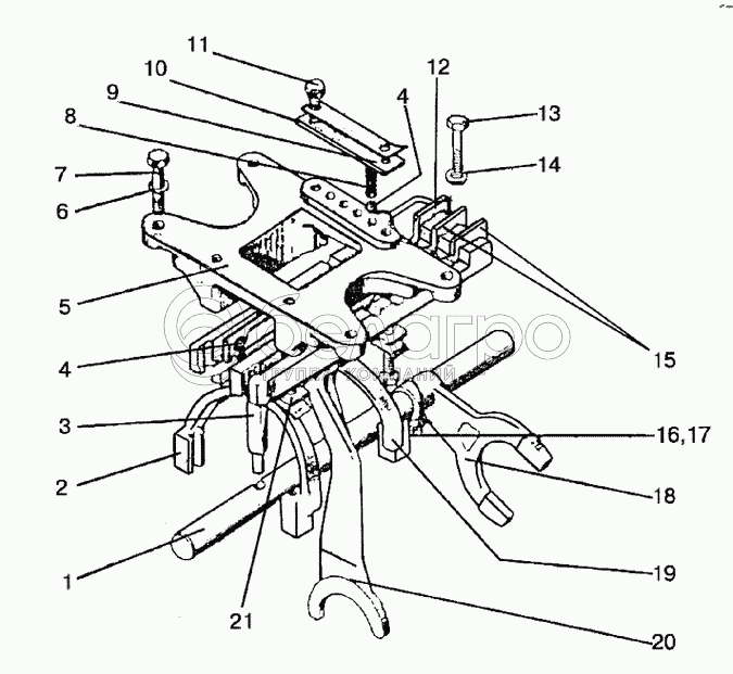 Каталог запасных частей к технике: МТЗ-821/921. Механизм управления синхронизированной КП, корпус вилок