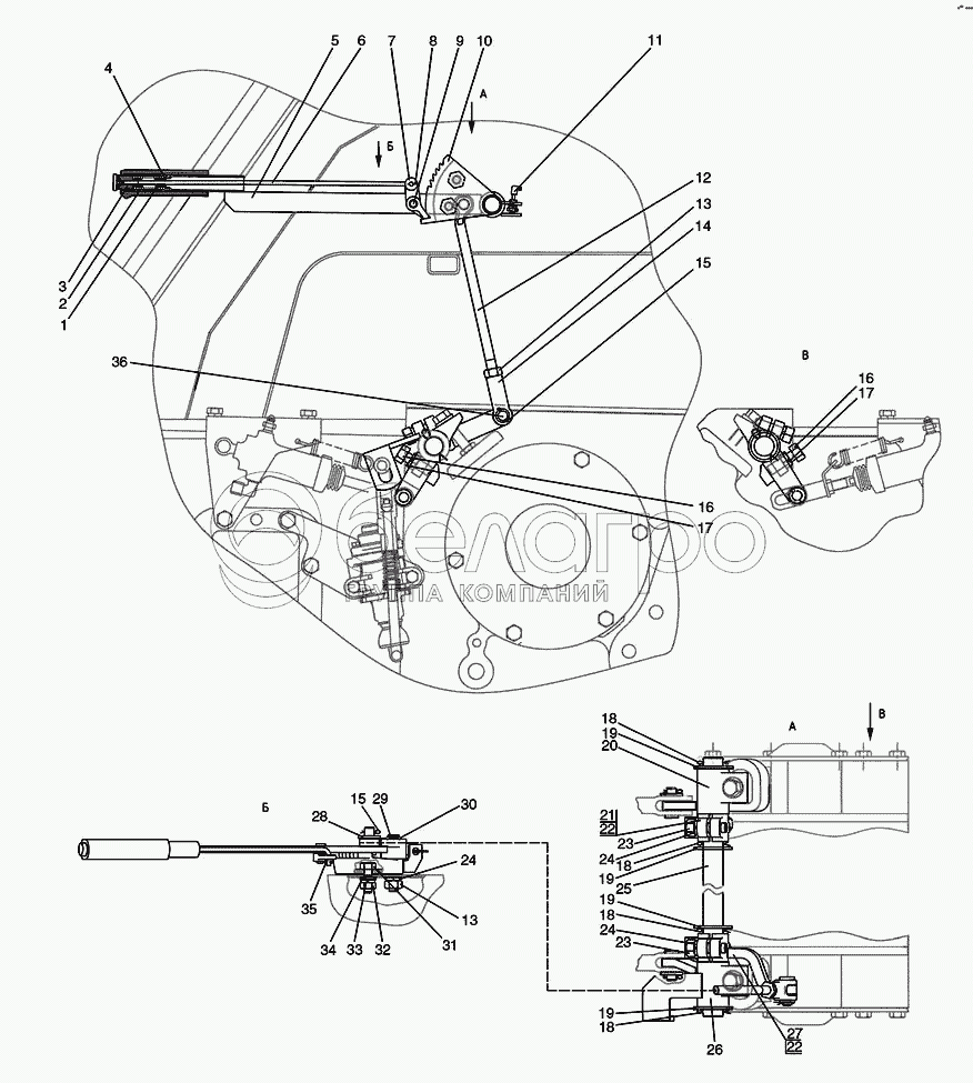 Каталог запасных частей к технике: МТЗ-821/921. Тормоз стояночный, управление стояночным тормозом
