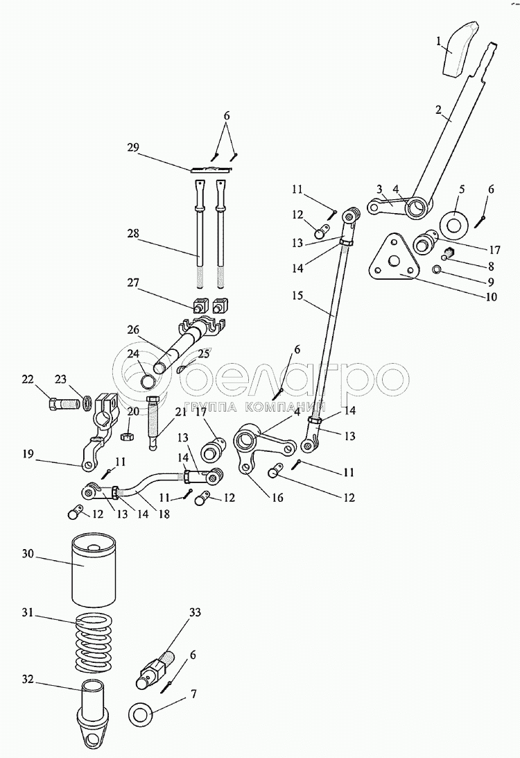 Каталог запасных частей к технике: МТЗ-821/921. Управление задним валом отбора мощности