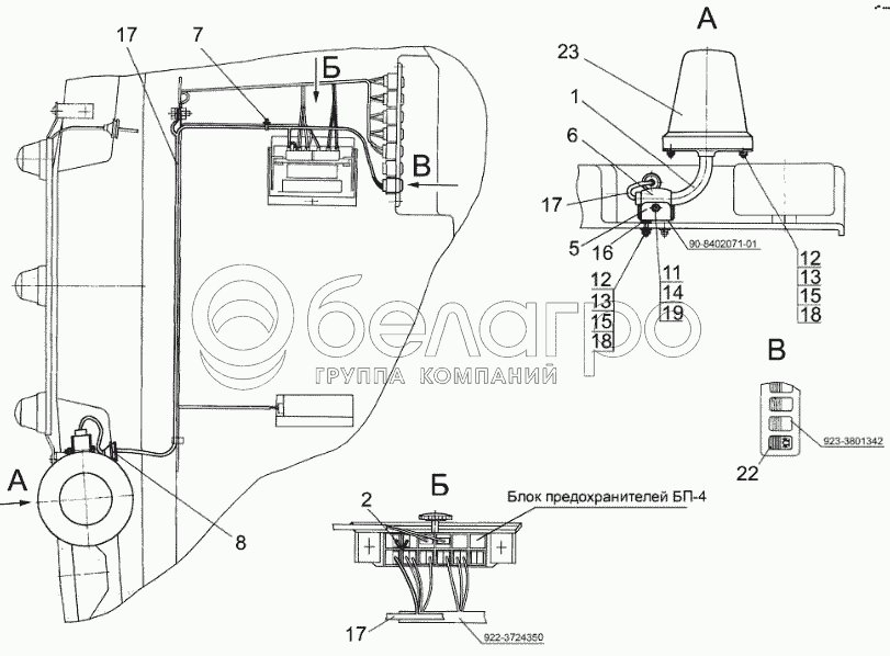 Каталог запасных частей к технике: МТЗ-821/921. Установка маячка сигнального