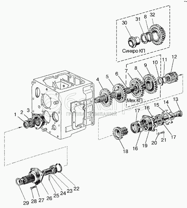 Каталог запасных частей к технике: МТЗ-821/921. Вал внутренний. Вал промежуточный