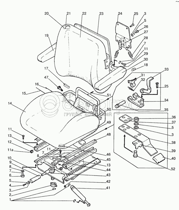 Каталог запасных частей к технике: МТЗ-822. Сиденье оператора