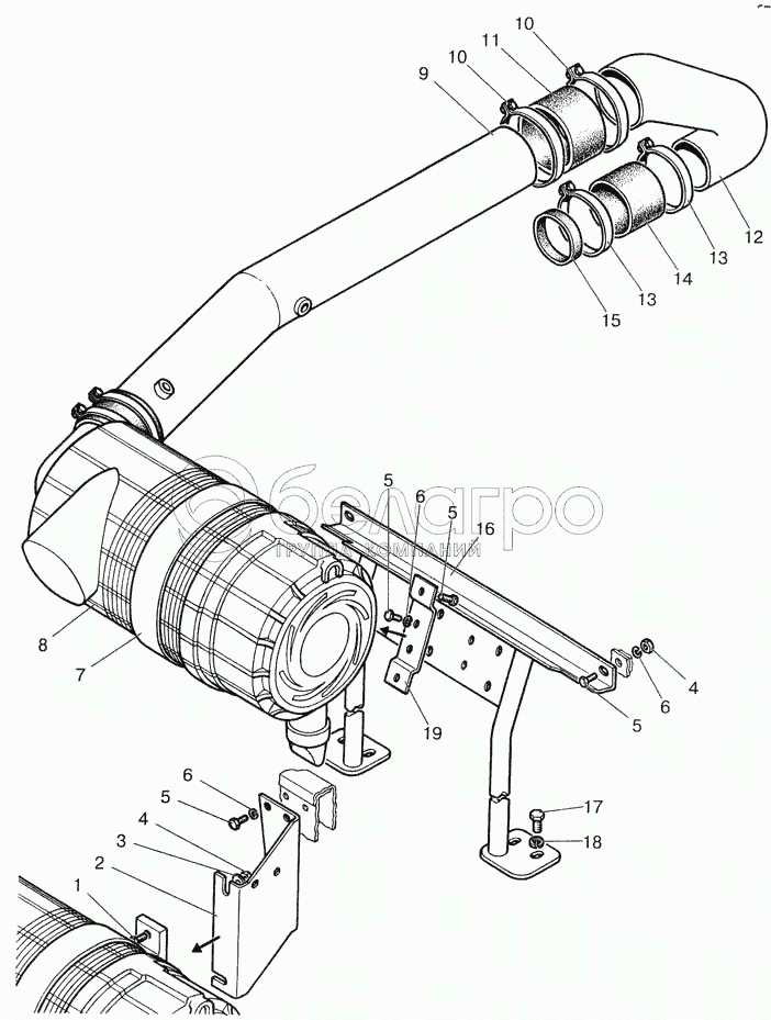 Каталог запасных частей к технике: МТЗ-822. Установка воздухоочистителя