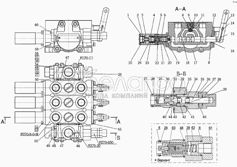 Каталог запасных частей к технике: МТЗ-826. Гидрораспределитель РП70