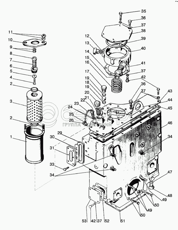 Каталог запасных частей к технике: МТЗ-826. Корпус гидросистемы и фильтр