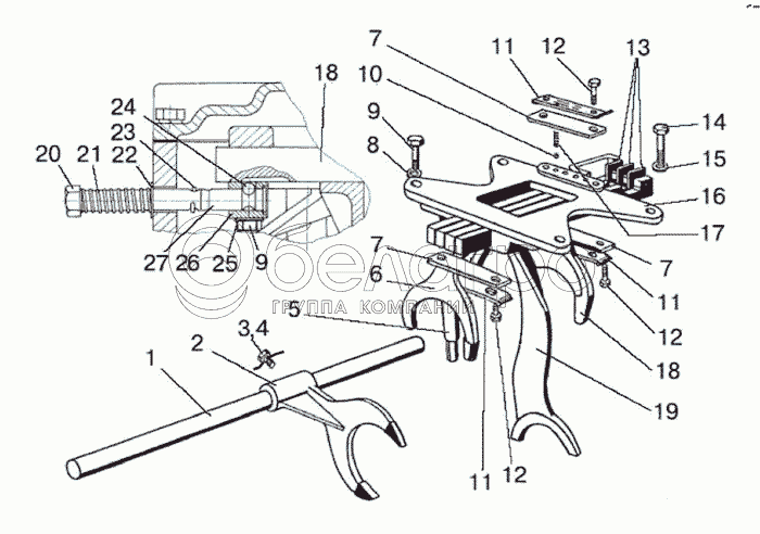 Каталог запасных частей к технике: МТЗ-826. Механизм управления механической КП. Корпус вилок