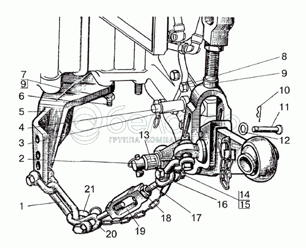 Каталог запасных частей к технике: МТЗ-826. Наружная блокировка нижних тяг