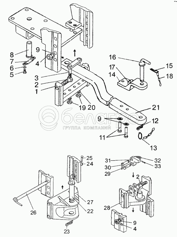 Каталог запасных частей к технике: МТЗ-826. Тягово-сцепное устройство, варианты комплектации