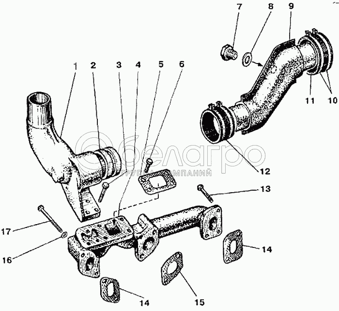 Каталог запасных частей к технике: МТЗ-900. Газопровод дизеля.