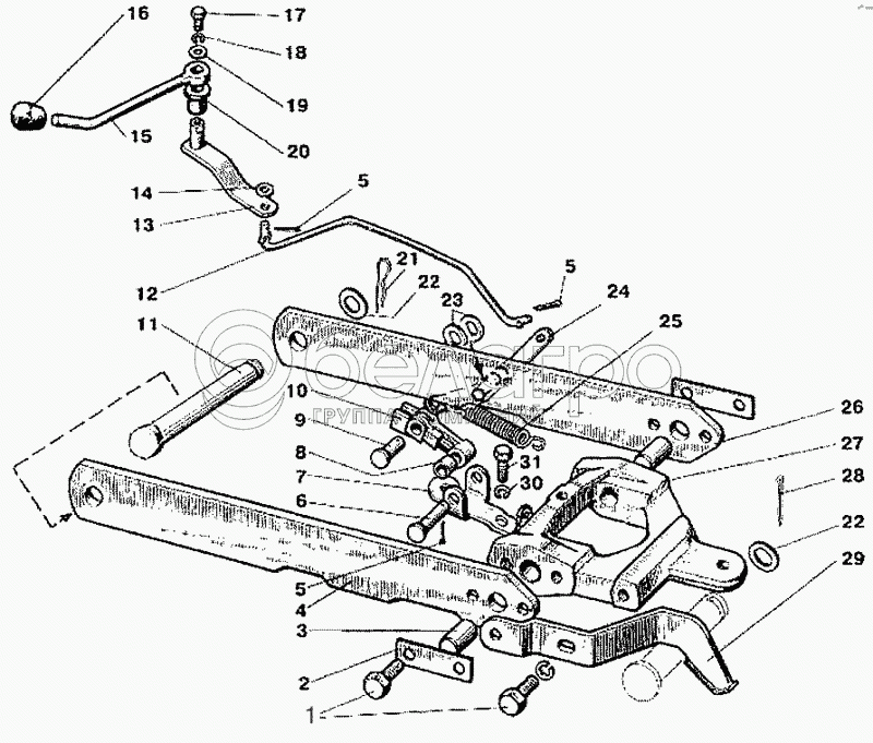 Каталог запасных частей к технике: МТЗ-900. Механизм фиксации навески