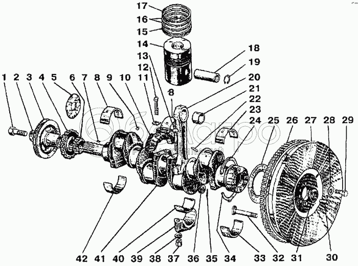 Каталог запасных частей к технике: МТЗ-900. Поршни и шатуны. Коленчатый вал и маховик
