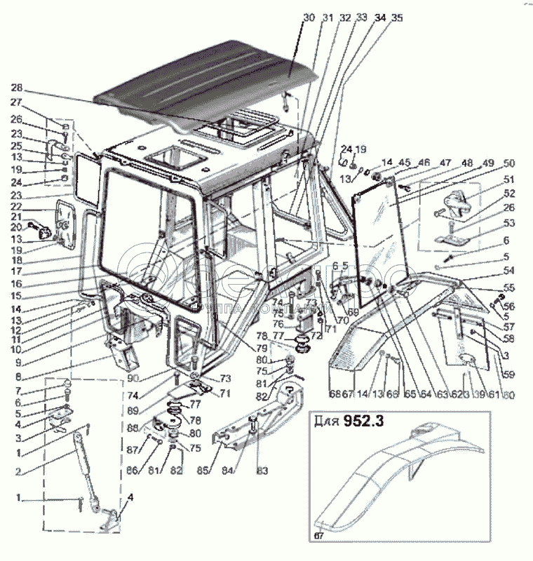Каталог запасных частей к технике: МТЗ-900/920/950/952. Кабина трактора, крылья задние