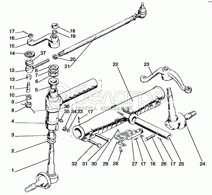Каталог запасных частей к технике: МТЗ-900/920/950/952. Ось передняя и тяга рулевая