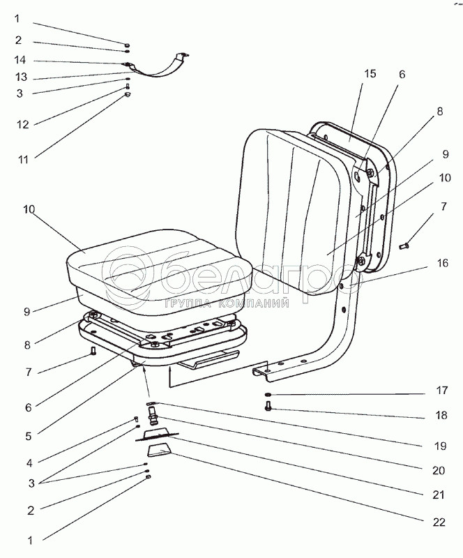 Каталог запасных частей к технике: МТЗ-900/920/950/952. Сиденье дополнительное