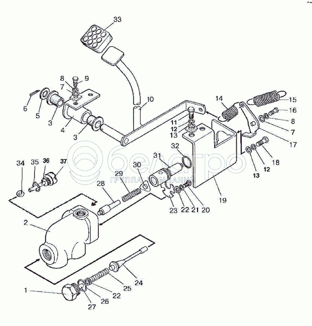 Каталог запасных частей к технике: МТЗ-900/920/950/952. Управление блокировкой дифференциала заднего моста