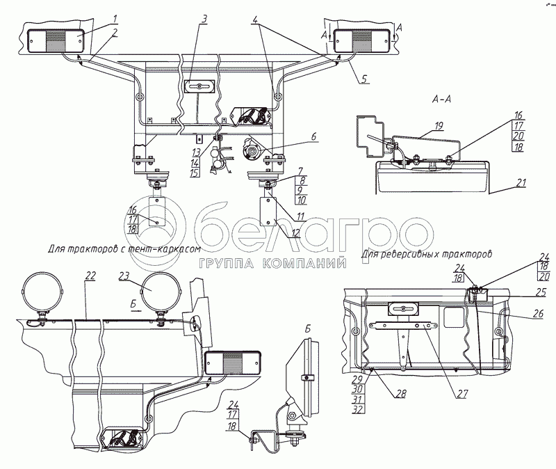 Каталог запасных частей к технике: МТЗ-900/920/950/952. Установка фонарей задних