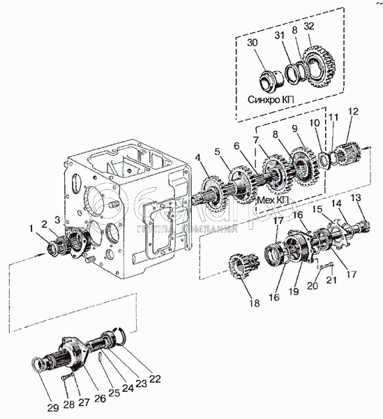 Каталог запасных частей к технике: МТЗ-900/920/950/952. Вал промежуточный. Вал внутренний