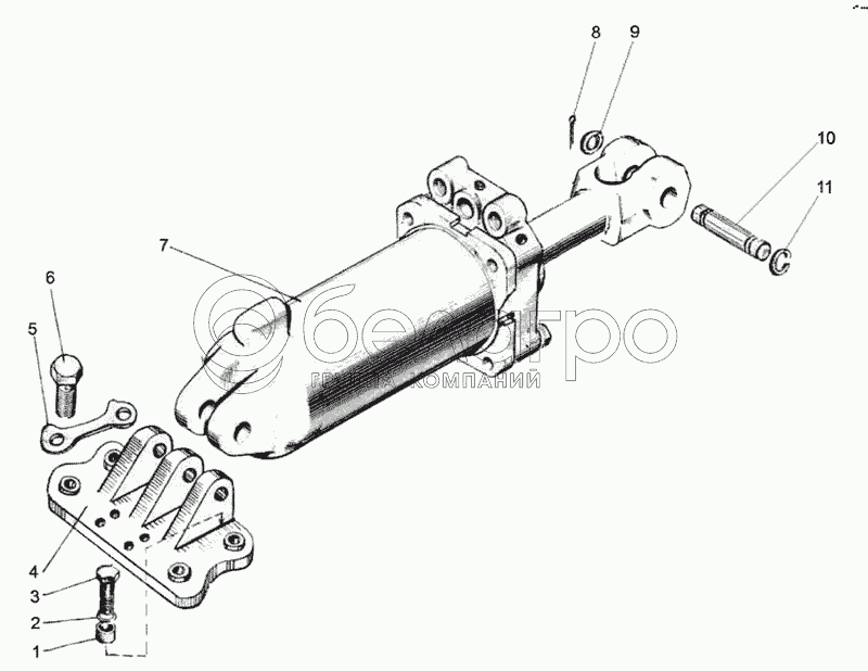 Каталог запасных частей к технике: МТЗ-90/92. Гидроцилиндр Ц100x200