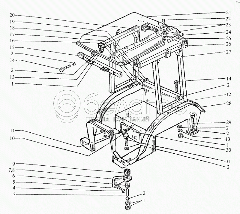 Каталог запасных частей к технике: МТЗ-90/92. Кабина (тент-каркас)