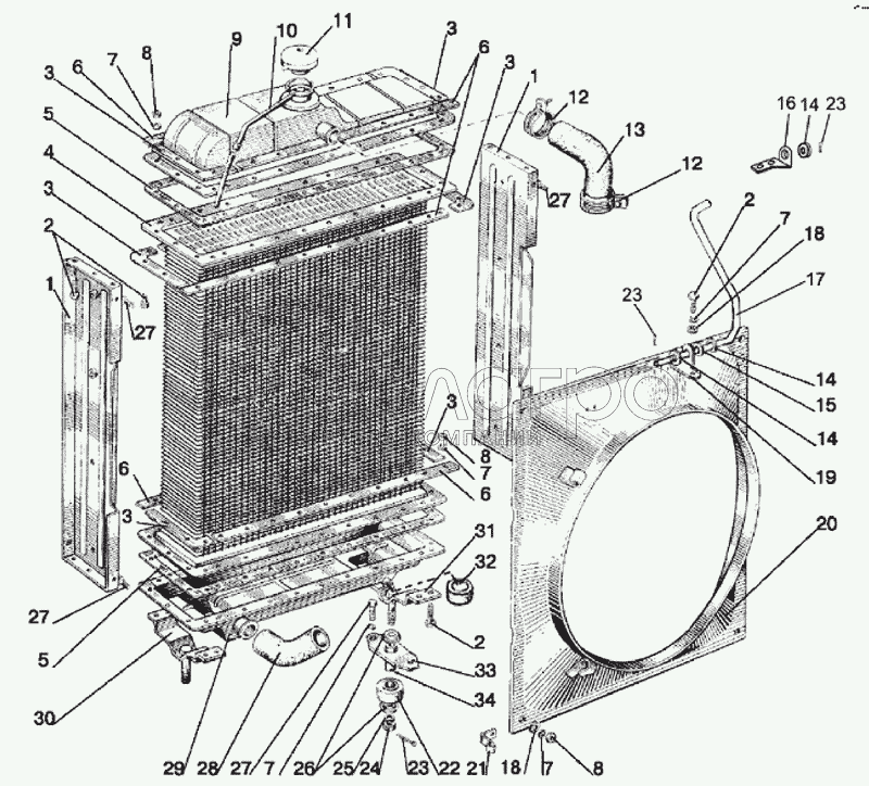 Каталог запасных частей к технике: МТЗ-90/92. Радиатор водяной. Подвеска радиатора водяного