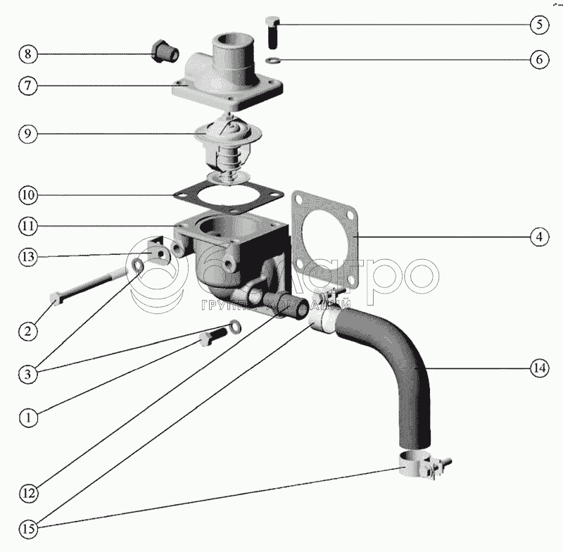 Каталог запасных частей к технике: МТЗ-90/92. Установка корпуса термостата