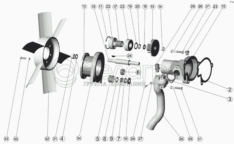 Каталог запасных частей к технике: МТЗ-90/92. Установка водяного насоса и вентилятора