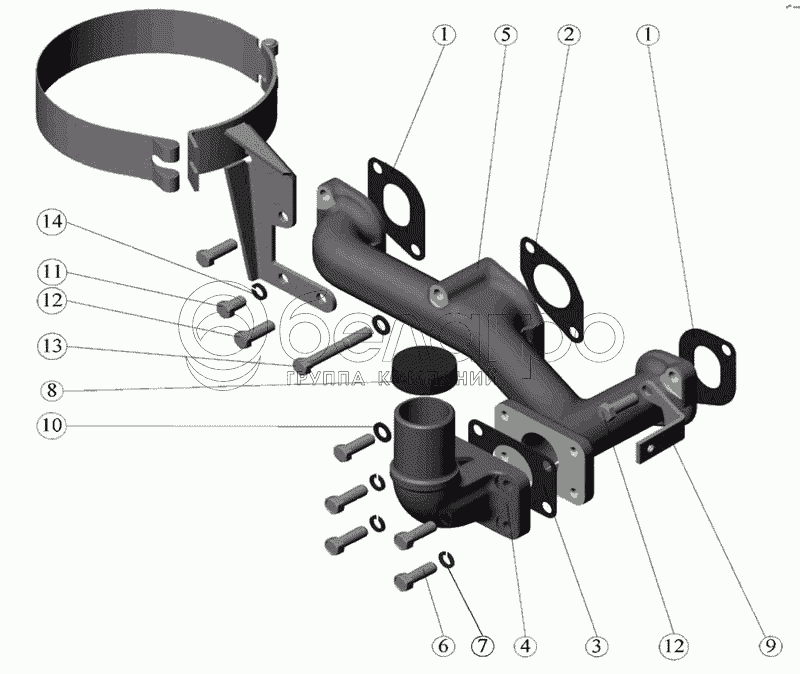 Каталог запасных частей к технике: МТЗ-90/92. Установка выпускного коллектора
