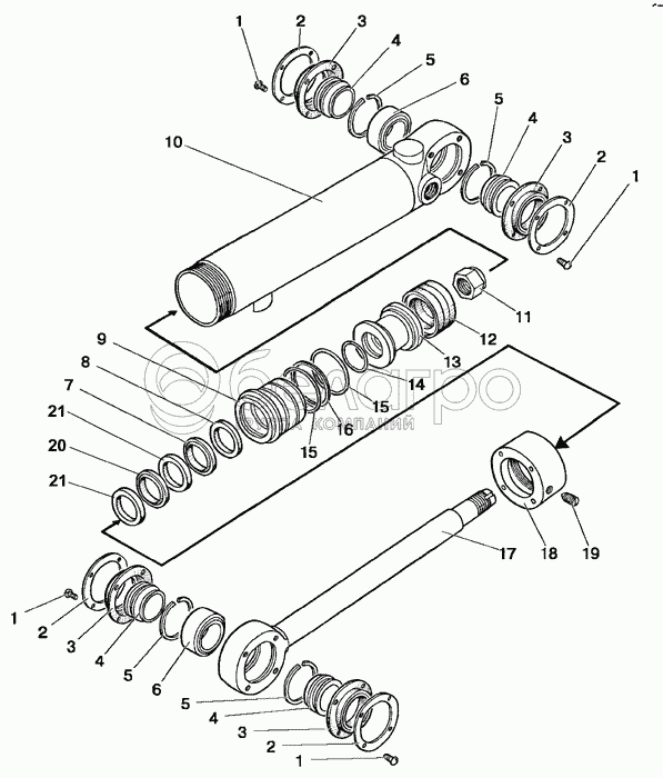 Каталог запасных частей к технике: МТЗ-920.4/952.4. Гидроцилиндр Ц63 (63x30-200)