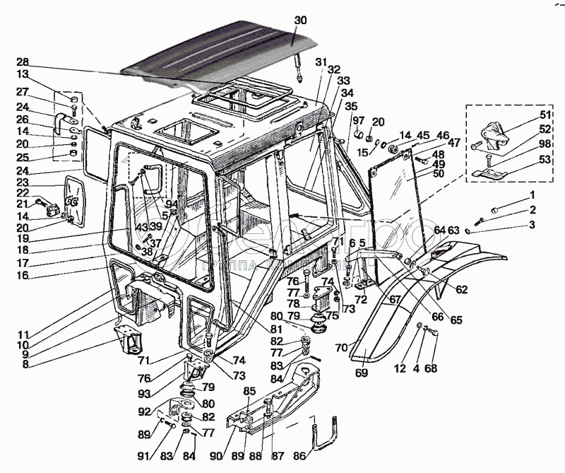 Каталог запасных частей к технике: МТЗ-920.4/952.4. Кабина трактора. Крылья задние