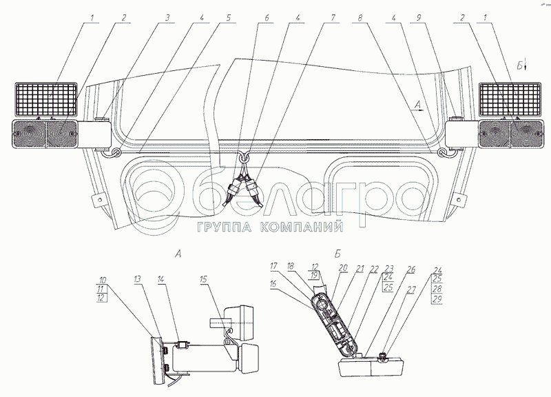 Каталог запасных частей к технике: МТЗ-920.4/952.4. Установка фонарей передних