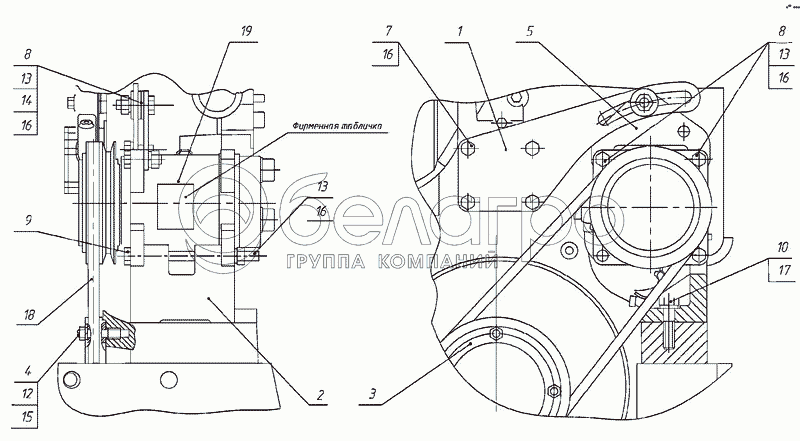 Каталог запасных частей к технике: МТЗ-920.4/952.4. Установка компрессора
