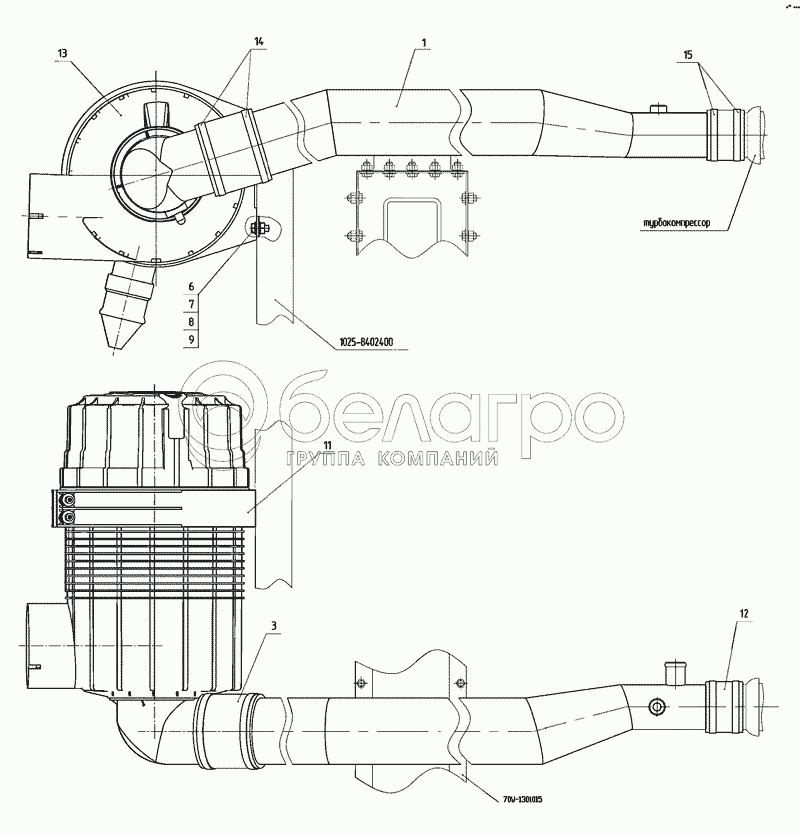 Каталог запасных частей к технике: МТЗ-920.4/952.4. Установка воздузоочистителя
