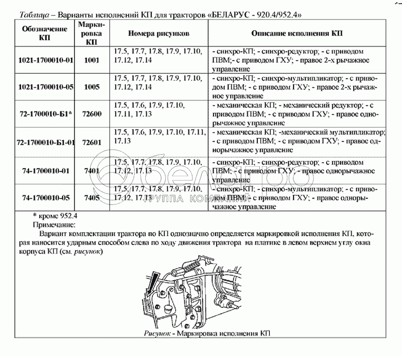Каталог запасных частей к технике: МТЗ-920.4/952.4. Варианты исполнения КП