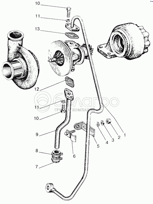 Каталог запасных частей к технике: МТЗ-922. Маслопроводы турбокомпрессора