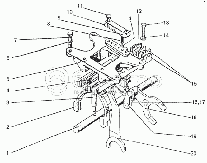 Каталог запасных частей к технике: МТЗ-922. Механизм управления коробкой передач. Корпус вилок