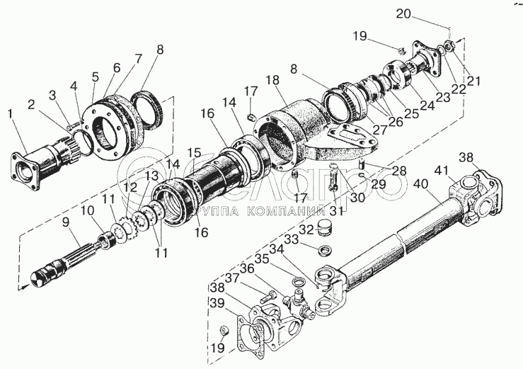 Каталог запасных частей к технике: МТЗ-923. Вал карданный. Промежуточная опора карданного вала