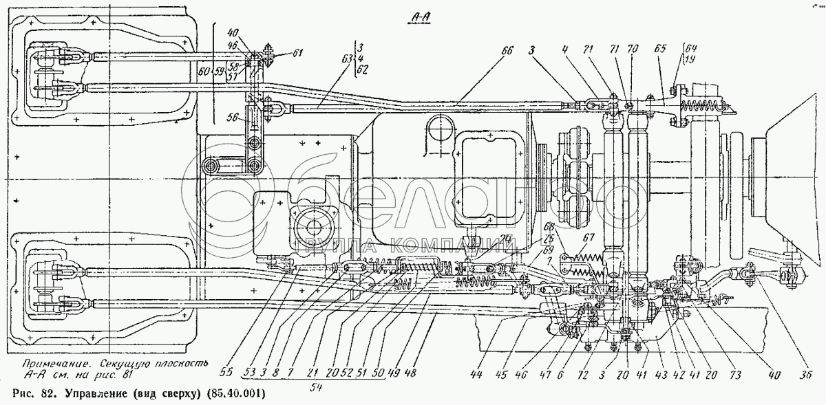 Каталог запасных частей к технике: ВгТЗ ДТ-75М. Управление (вид сверху) (85.40.001)