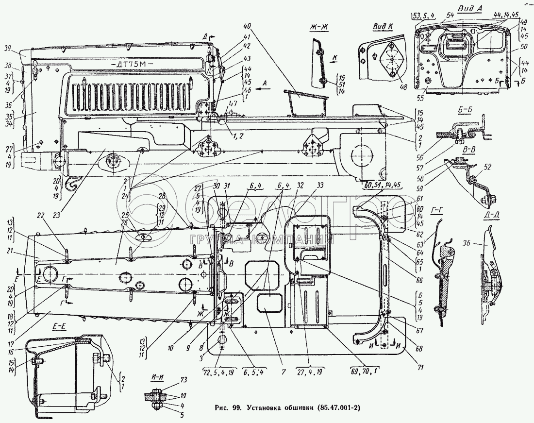 Каталог запасных частей к технике: ВгТЗ ДТ-75М. Установка обшивки (85.47.001-2)