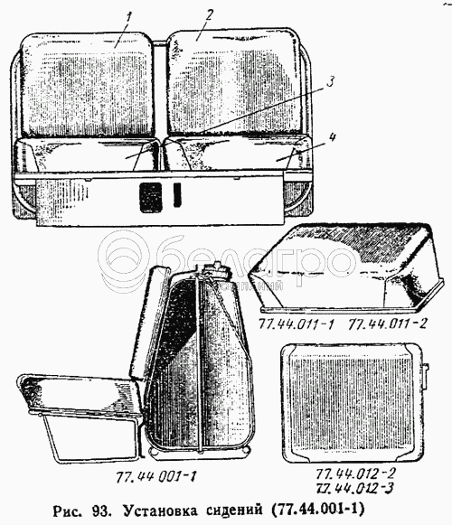 Каталог запасных частей к технике: ВгТЗ ДТ-75М. Установка сидений (77.44.001-1)