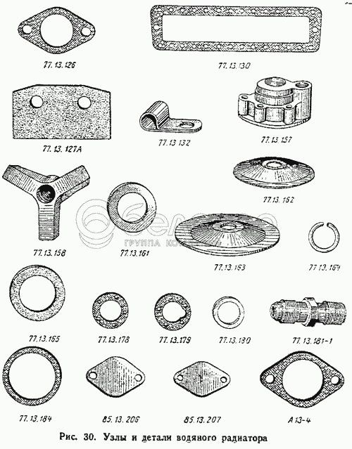 Каталог запасных частей к технике: ВгТЗ ДТ-75М. Узлы детали водяного радиатора